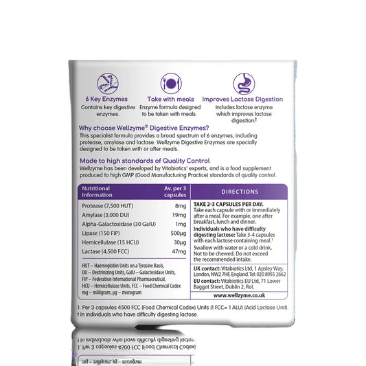 VITABIOTICS WELLZYME DIGESTIVE ENZYMES 60 Capsules
